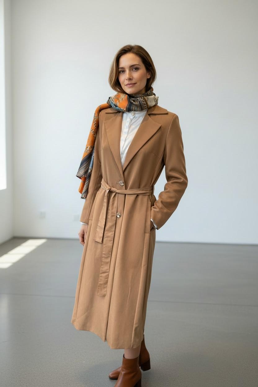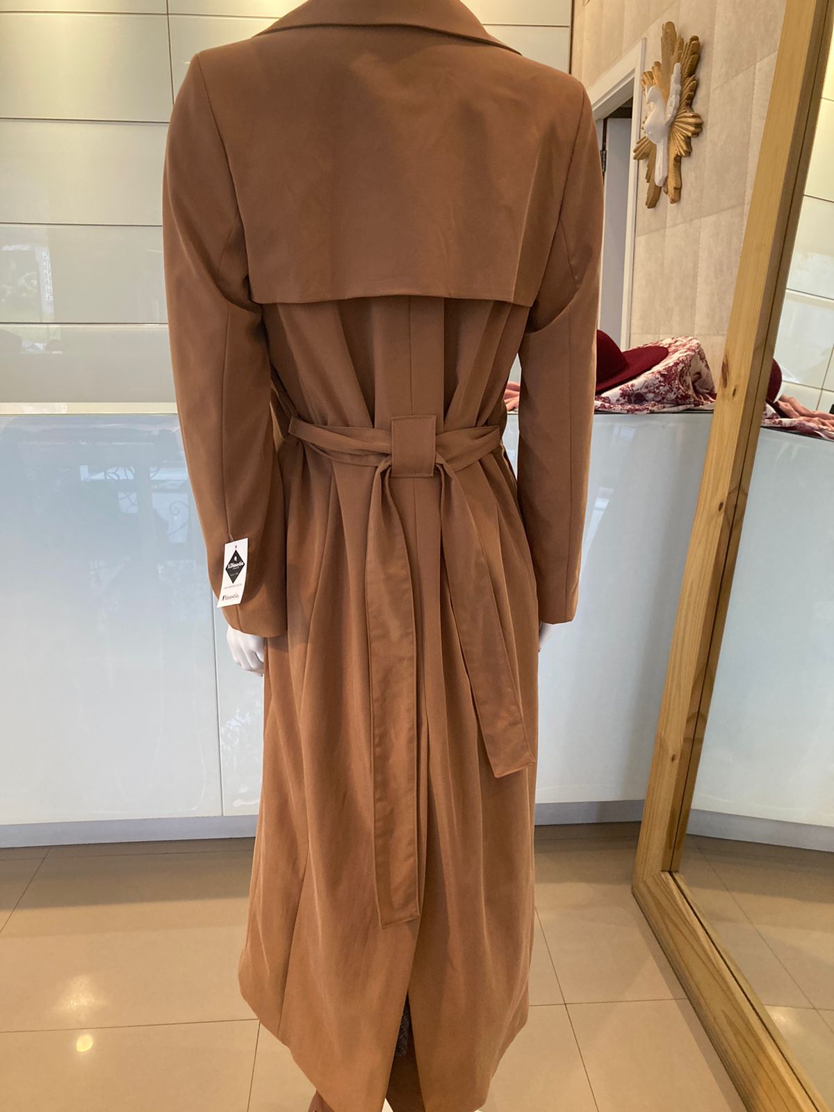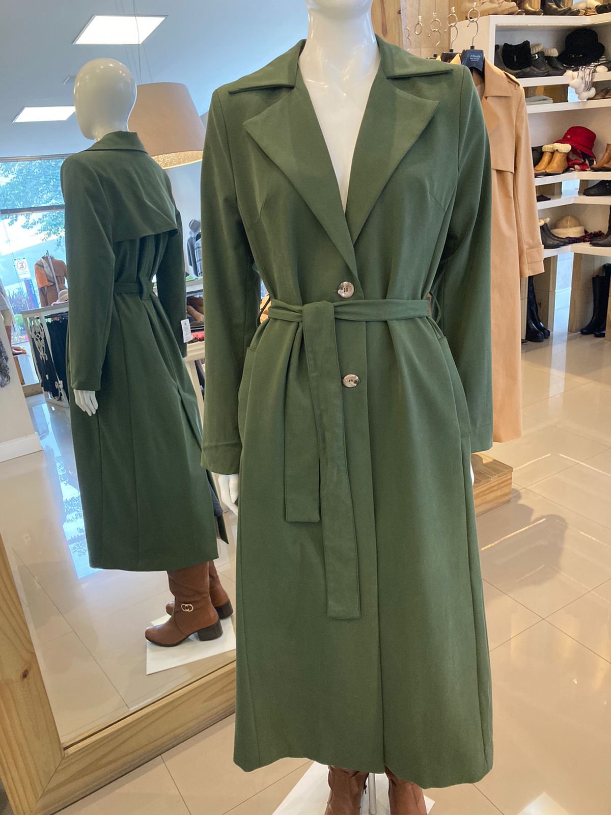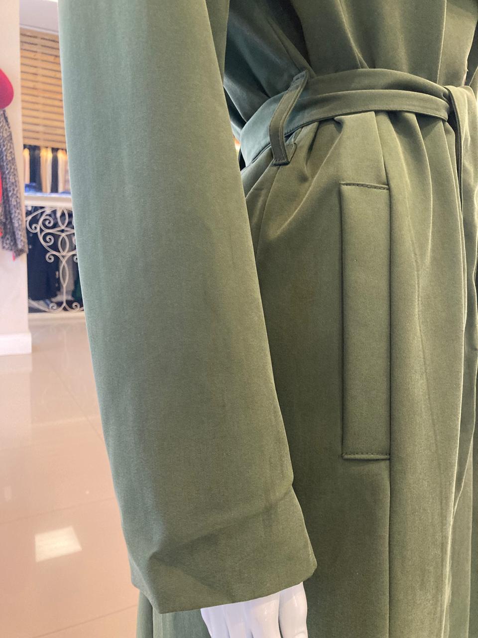 Peça atemporal e elegante; pode ser usada como capa, trench-coat, vestido e chemise.